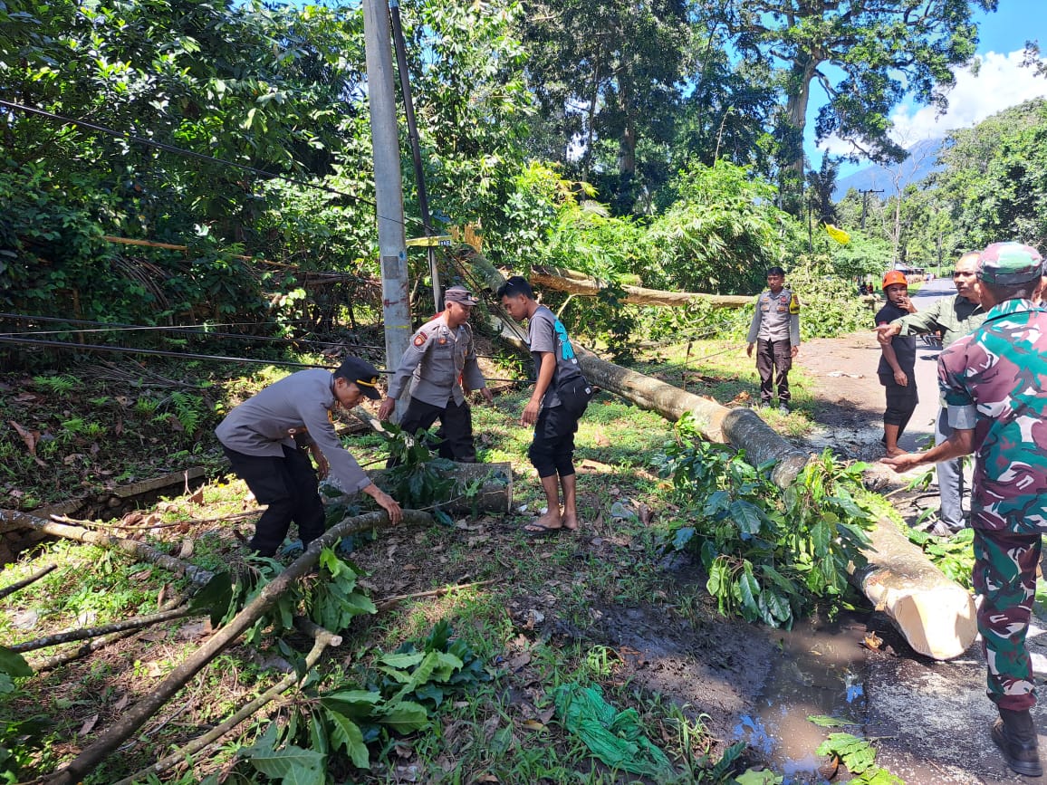 Pohon Tumbang Hingga Menutupi Badan Jalan, Kapolsek Suela Bersama Anggota Turun Tangan