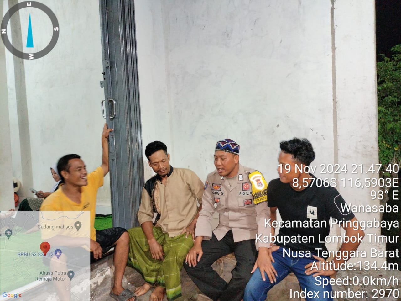 Lombok Timur – Bhabinkamtibmas Desa Bagik Papan, Bripka Agus Salim lakukan Silaturahmi dengan Warga binaan yang ada di Dusun Bagik Papan Daya di rumah Amaq Rustam. Selasa (19/11/24)., Pukul 21.50 Wita.