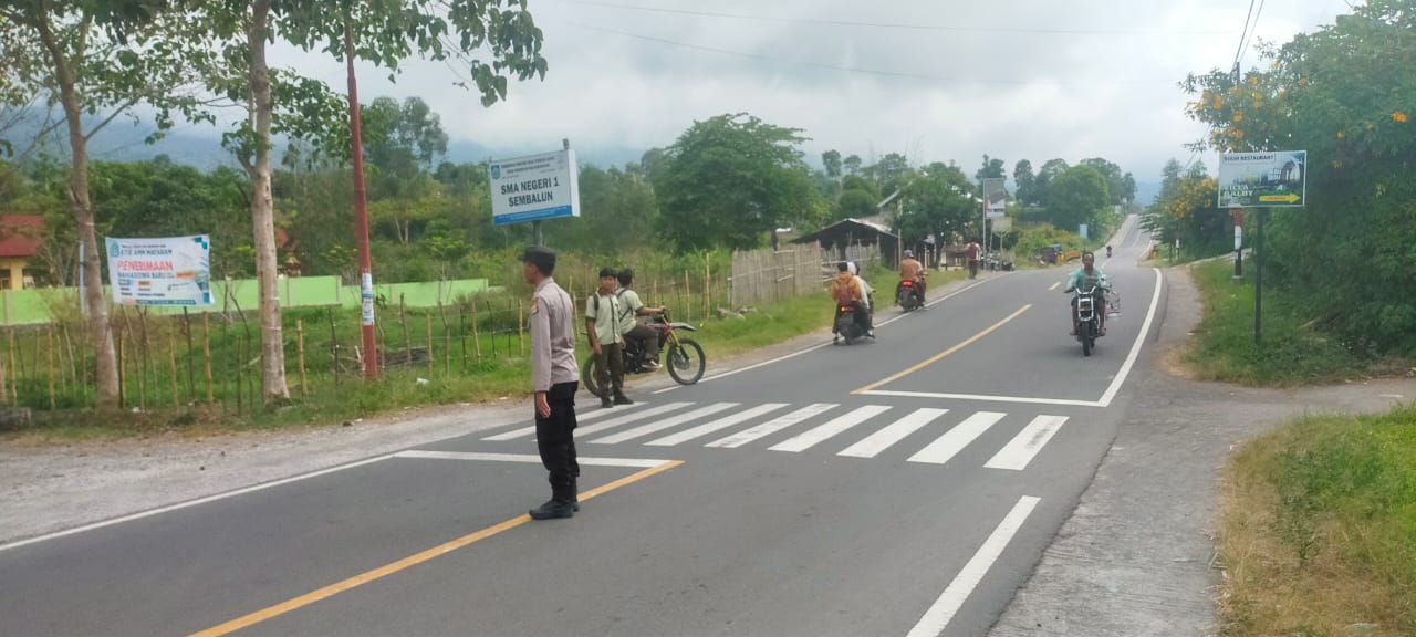 Kali ini Anggota jaga SPKT Polsek Sembalun membantu menyebrangkan pelajar yang keluar dari sekolah dan memperlancar arus lalu lintas di lokasi. Selain itu, petugas menghimbau pengguna jalan untuk selalu berhati-hati, mengenakan helm, dan mengutamakan keselamatan saat berkendara. Kegiatan berlangsung tertib dan lancar.