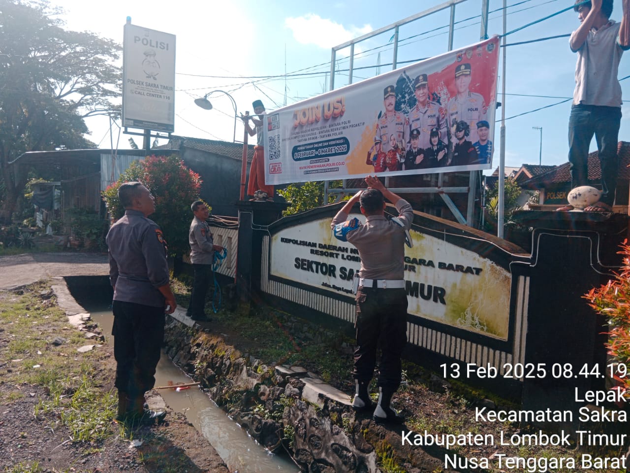 Lombok Timur – Dalam upaya meningkatkan kesadaran masyarakat terhadap peluang bergabung dengan Kepolisian Republik Indonesia (Polri), personel Polsek Sakra Timur mengadakan sosialisasi penerimaan Polri dengan melakukan pemasangan banner pada Kamis (13/2/2025).