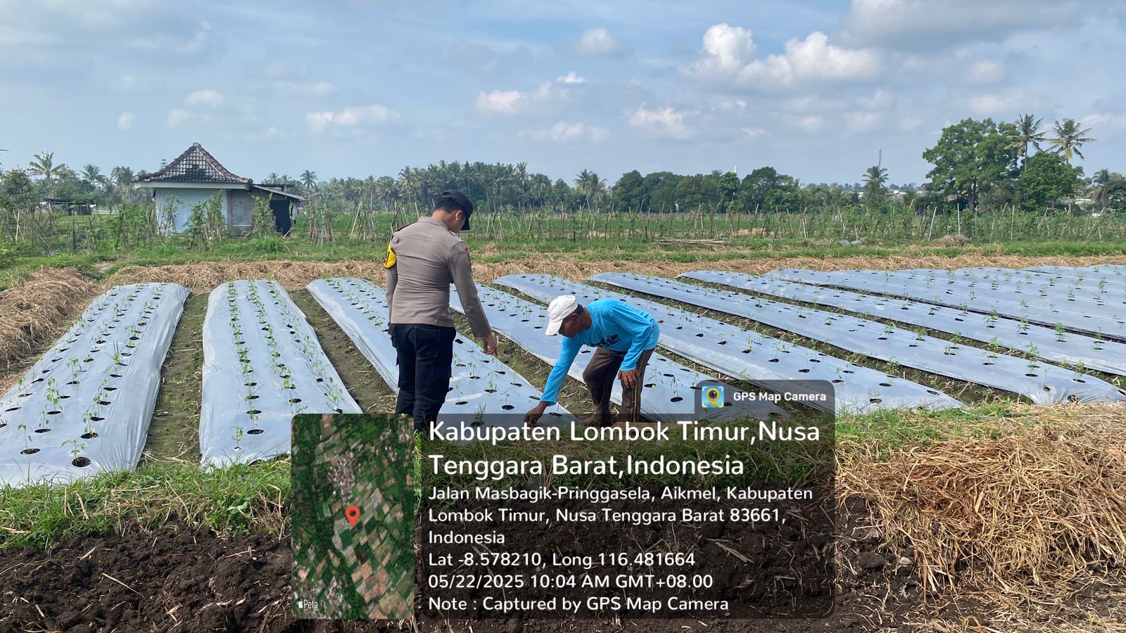 Bhabinkamtibmas Pringgasela Timur Cek Lahan Tanaman Cabai Guna Lancarnya Program Ketahanan pangan
