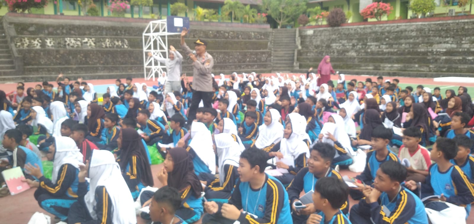 Kanit Binmas Polsek Masbagik Beri Edukasi Kenakalan Remaja, Tertib Lalu Lintas, dan Bahaya Narkoba di SMPN 02 Masbagik