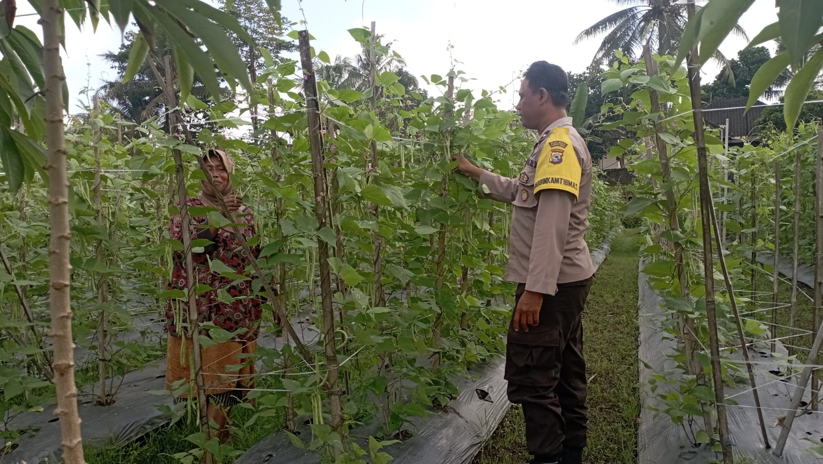 Kegiatan ini merupakan bagian dari program Polri dalam mendukung ketahanan pangan nasional, khususnya di wilayah pedesaan. Dalam kegiatan tersebut, Aipda Rodi H. bersama masyarakat binaan dan anggota kelompok tani setempat melakukan pengecekan terhadap tanaman kacang panjang yang menjadi salah satu komoditas utama di lahan tersebut.