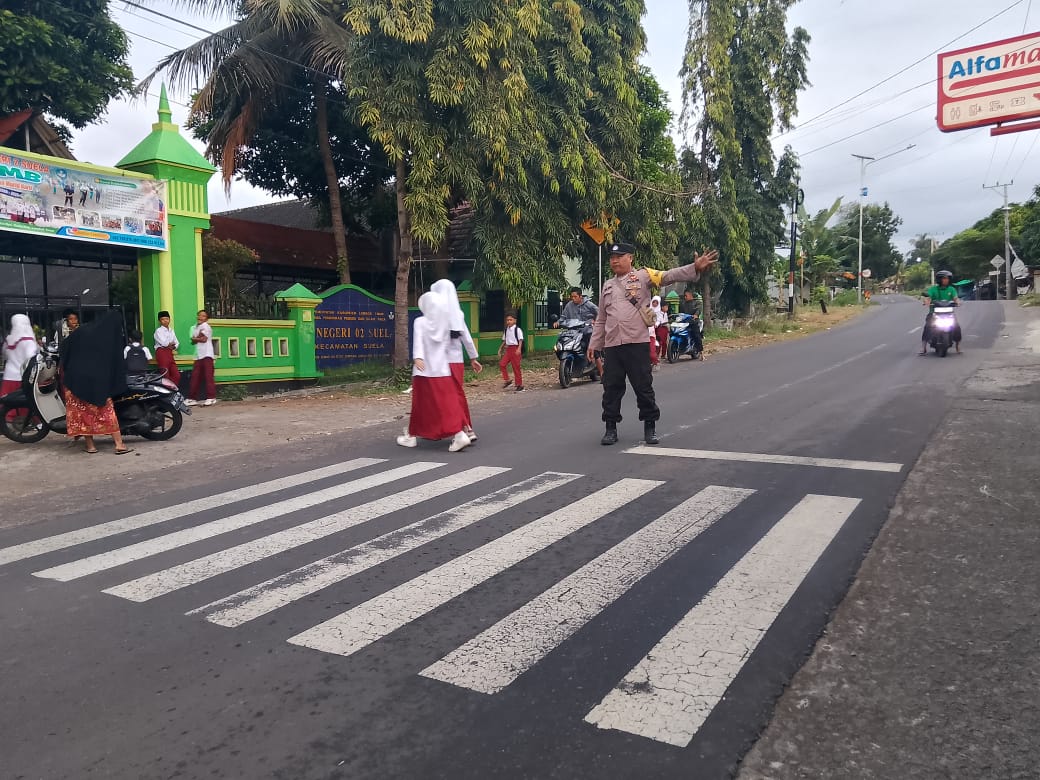 Dalam pelaksanaannya, sejumlah anggota Polsek Suela ditempatkan di titik-titik strategis sekitar sekolah untuk membantu menyeberangkan siswa serta mengatur lalu lintas, mengingat padatnya aktivitas pagi di kawasan tersebut.