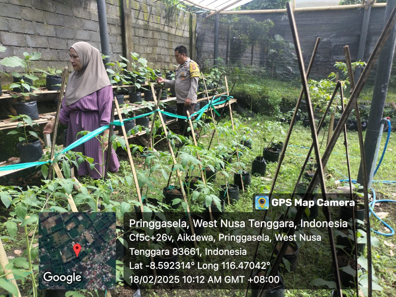 Lombok Timur – Bhabinkamtibmas Desa Aikdewa, Aipda Muhammad Munawar, bersama Kepala Wilayah (Kawil) dan Ketua Kasih Bunda, melakukan pengecekan dan perawatan tanaman dalam program Pekarangan Pangan Bergizi (P2B) di pekarangan Kantor Desa Aikdewa, Pringgasela. Program ini bertujuan untuk meningkatkan ketahanan pangan dengan memanfaatkan pekarangan untuk menanam berbagai jenis tanaman yang bergizi.