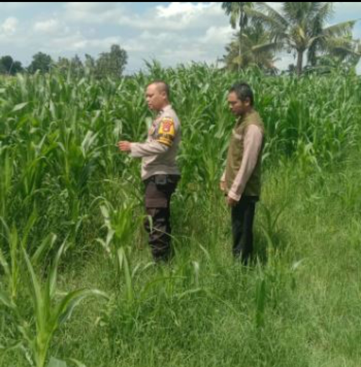 Bhabinkamtibmas Desa Santong Silaturahmi Dan Cek Tanaman Jagung