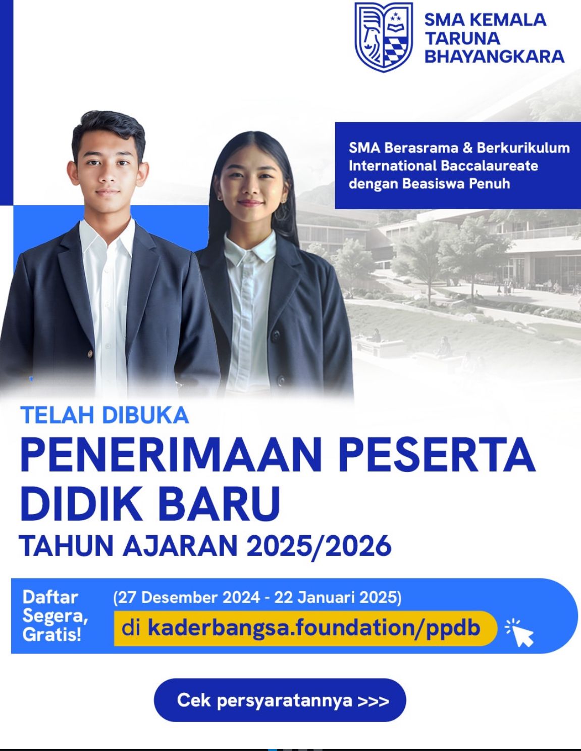 Lombok Timur – Telah dibuka Penerimaan Peserta Didik Baru (PPDB) SMA Kemala Taruna Kemala Bhayangkara, yang diperuntukkan bagi siswa-siswi SMP yang berprestasi dan diprioritaskan kepada kepada siswa/siswi yang kurang beruntung secara ekonomi dari seluruh Indonesia, untuk melanjutkan pendidikan ke sekolah berkualitas secara gratis.