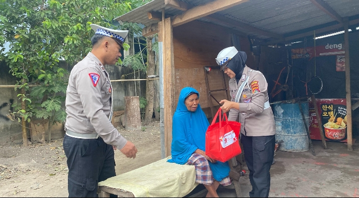 Lombok Timur – Personel Satuan Lalu Lintas (Sat Lantas) Polres Lombok Timur melaksanakan pembagian bantuan sosial (bansos) kepada masyarakat di Kecamatan Labuhan Haji dan Kecamatan Selong pada Jumat pagi, 20 Juni 2025 mulai pukul 07.00 Wita.